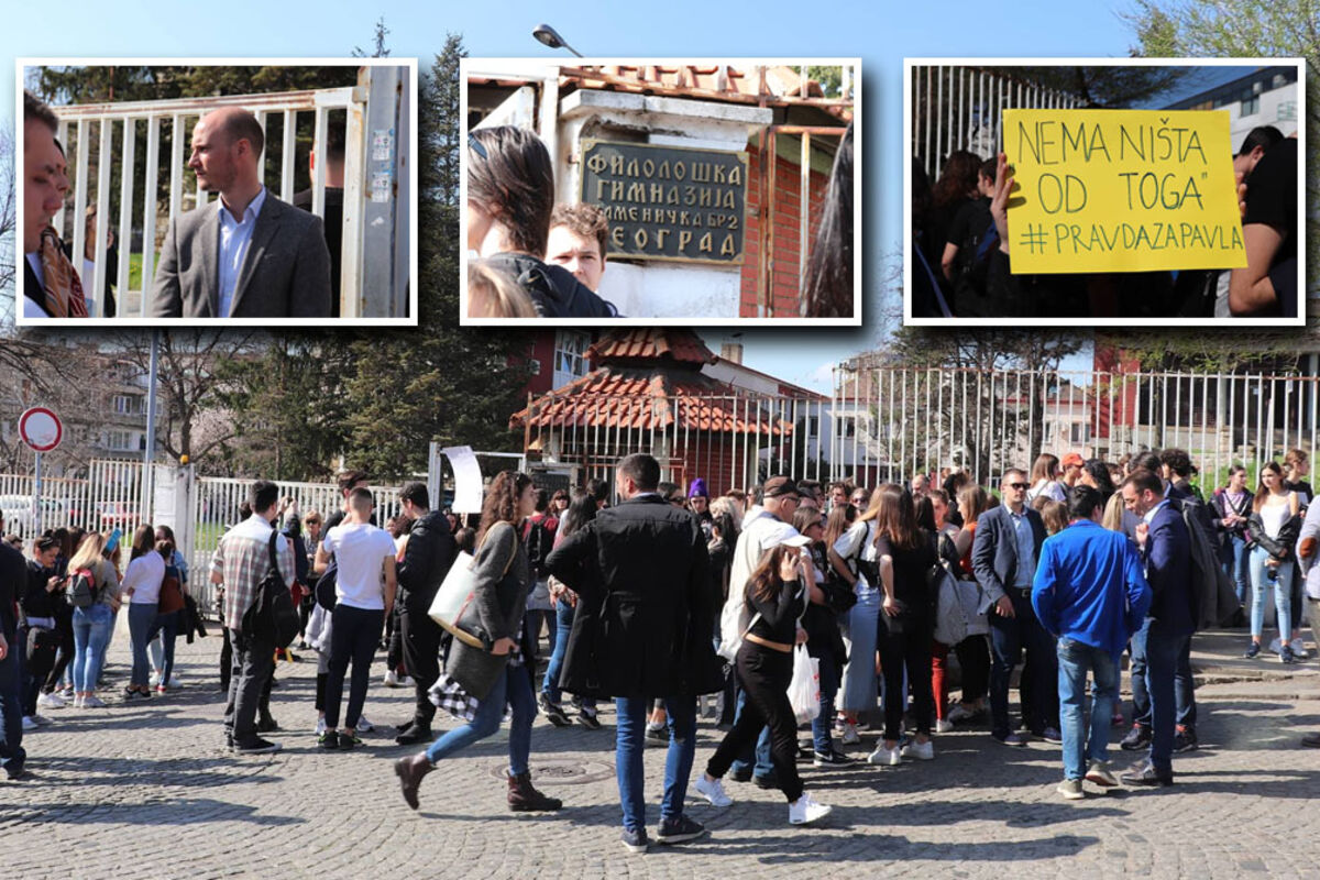14:02 Ispred gimnazije okupio se veliki broj učenika koji u rukama drži transparente sa parolama: "Pravda za Pavla", "Imate li decu?", "Nije srpski ćutati na krivicu", "Učionica, a ne zatvor".