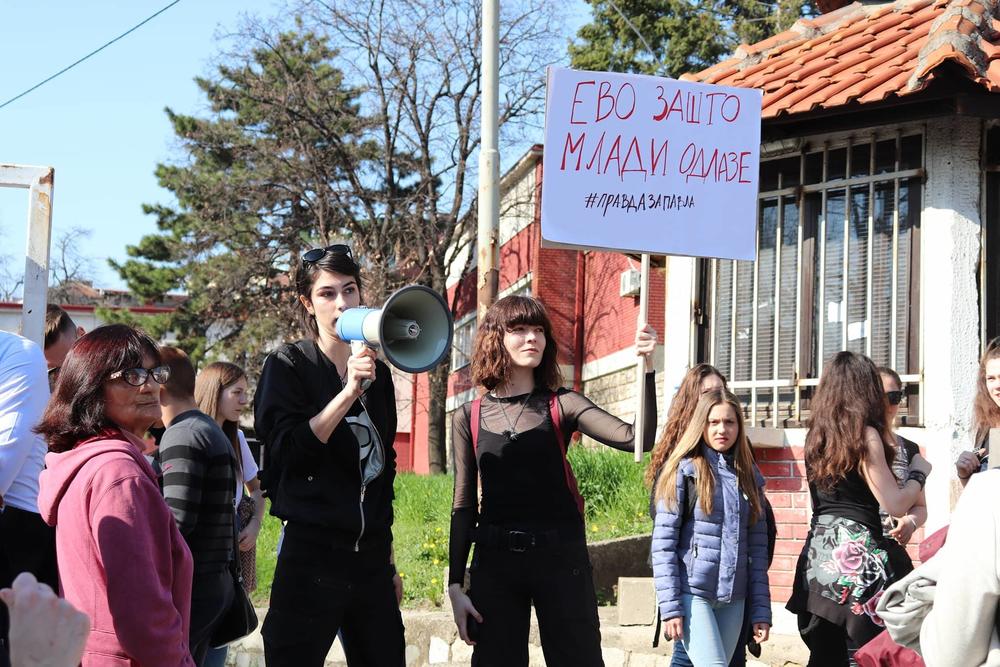 15.55 Na protest su došli i roditelji pojedinih učenika. Natalija Petković, majka jednog od prisutnih učenika, rekla je za portal Espreso.co.rs da je došla kako bi im pružila podršku u nameri da oslobode svog školskog druga.
