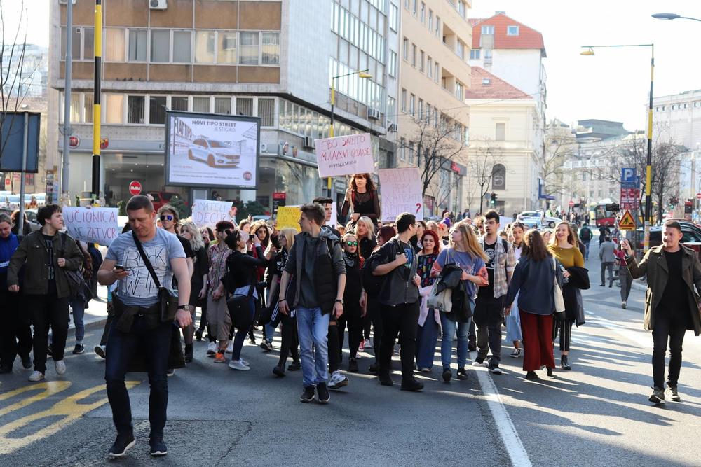 14:25 Povorka je krenula od Filološke gimnazije ka zgradi MUP-a u ulici Bulevar Despota Stefana. Saobraćaj na tom potezu je obustavljen.