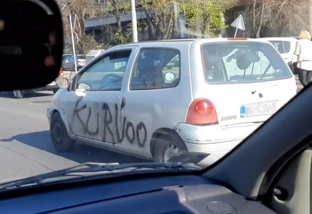 Izgleda da se nekome baš zamerila pa su napisali uvredu na njeno vozilo, koju očito još nije prefarbala.