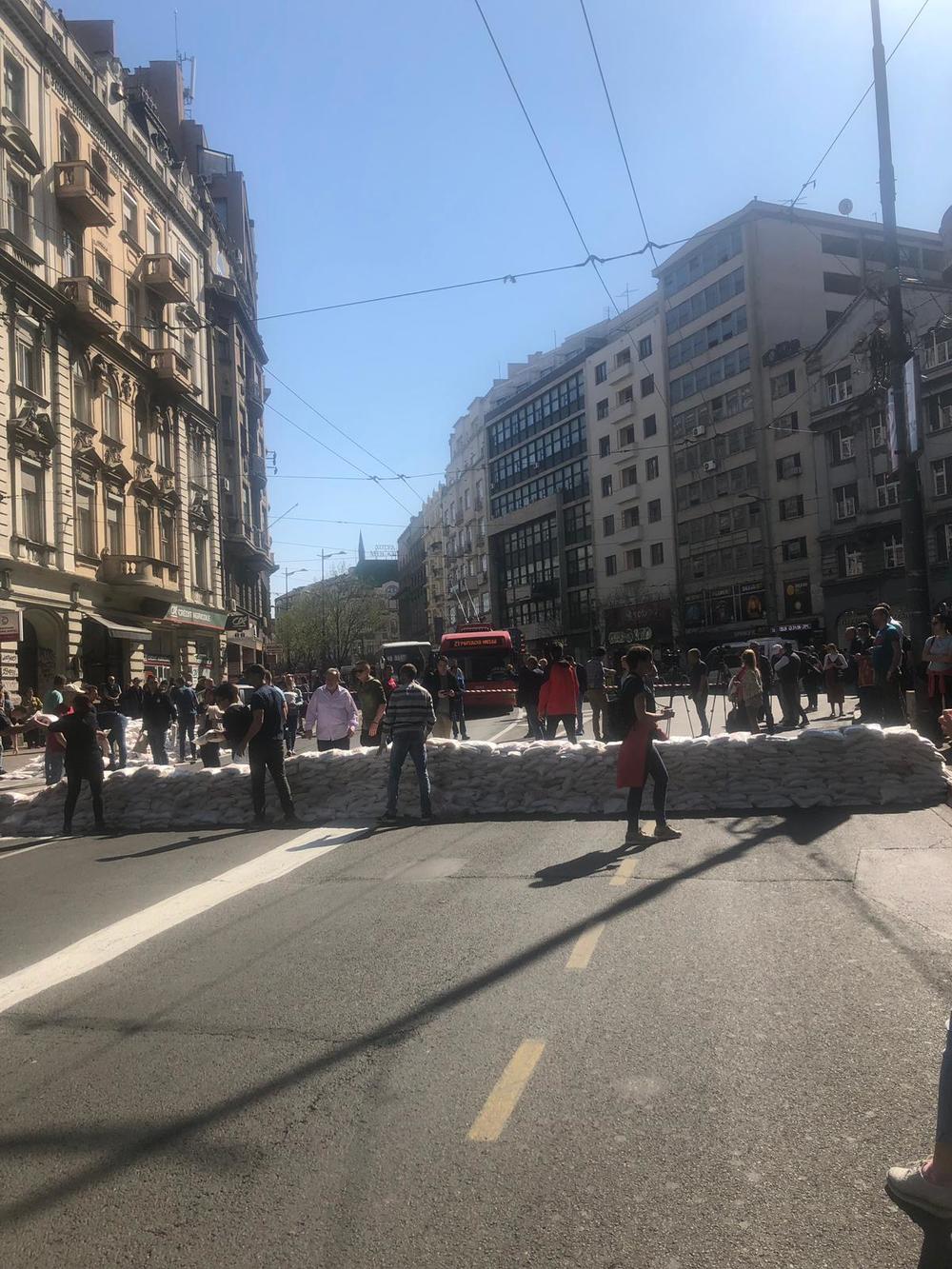- Ceo grad je žrtva njihova... Mi smo svi taoci 30 budala neodgovornih... Pa vidite, roditelji sa decom, penzioneri sa unicima, turisti... Svi su krenuli negde, krenuli ljudi na porodične ručkove, ovi im uništavaju dan jer ih mrze što nisu glasali za njih.
