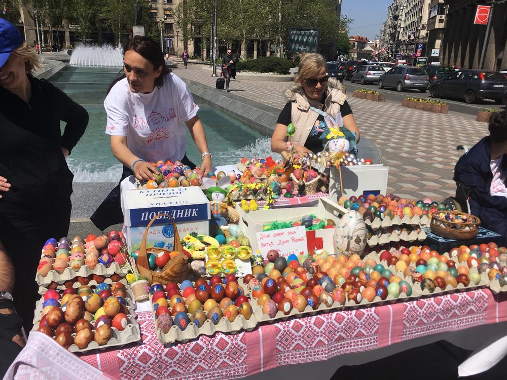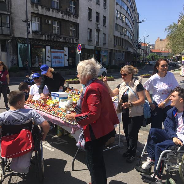 Na trgu Nikole Pašića već sedam godina zaredom uoči Uskrsa, građane Beograda dočekuju nasmejana lica osoba sa invaliditetom koji prodaju najlepša uskršnja jaja koja su na veoma kreativan način išarana.