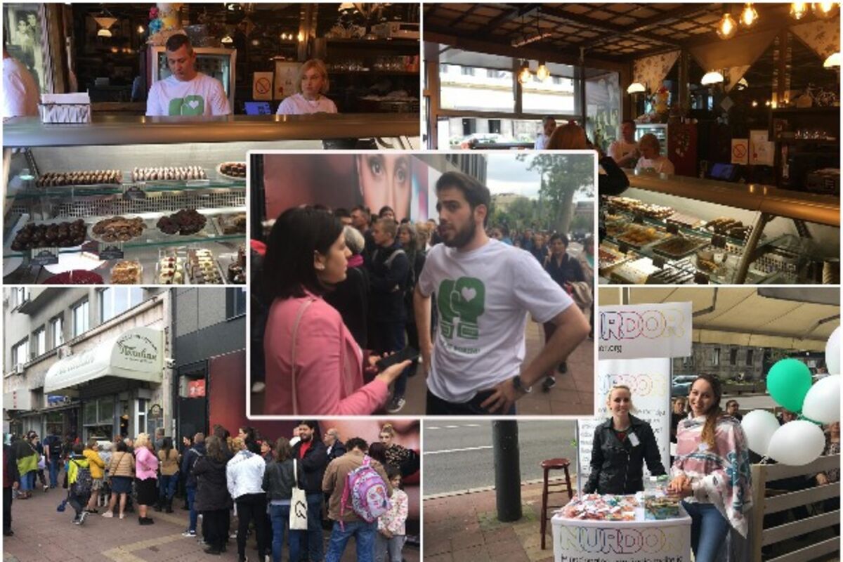 Ispred poslastičarnice je bilo krcato već oko pola pet kada je počela proslava rođendana, a građani su nam rekli da imaju samo reči hvale kako za humanitarnu akciju tako i za sladoled.