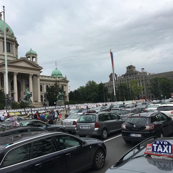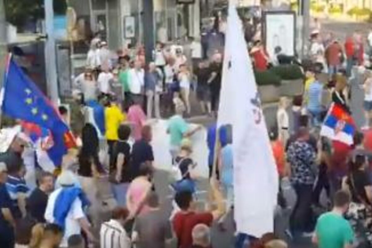 Okupljeni su potom krenuli u protestnu šetnju kojom su od Ulice kralja Milana, kroz Resavsku i Bulevar kralja Aleksandra stigli do zgrade RTS-a, gde je današnje okupljanje završeno "dnevnikom slobodne Srbije".
