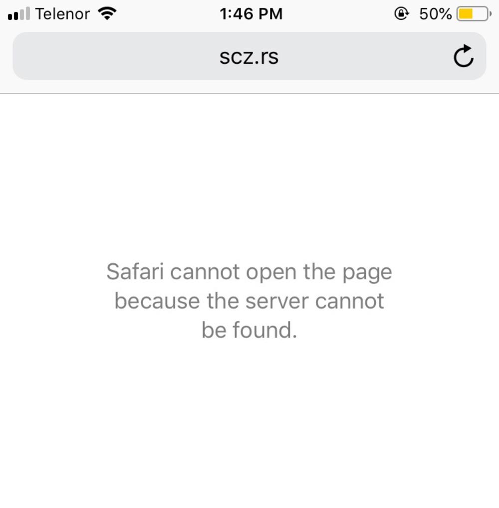 Kada se na "guglu" ukuca adresa "www.scz.rs" - pretraživač kaže da se radi o nepostojećoj stranici.