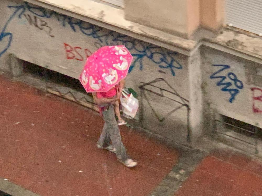 Jedan tata je zaštitio ćerkicu najbolje što je mogao, jer ih je kiša, očigledno, zatekla dok su se vraćali iz nabavke.