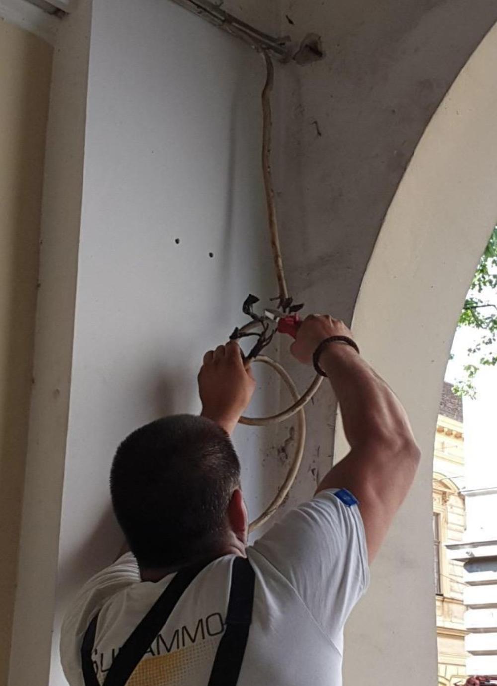 Poslednja dva dana uklanjali smo nelegalne priključke sa stubova javne rasvete. Uklonili smo preko 5 kilometara nelegalnih kablova, koje je postavilo 51 pravno lice, koje je kralo struju. Oni se, lepo, nelegalno zakače za stub javne rasvete, kradu struju koju plaćaju svi Beograđani i tako prave posao.