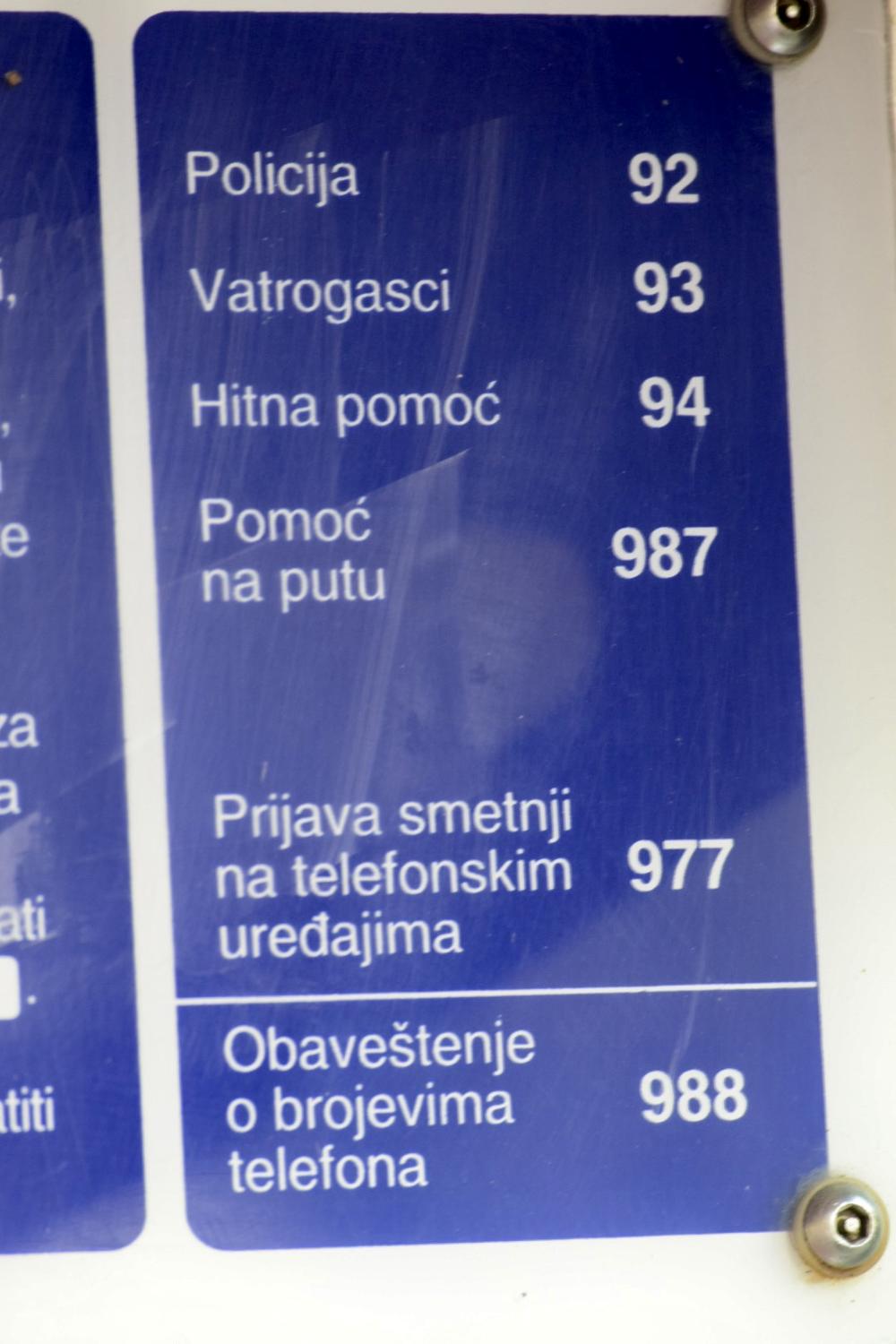 U slučaju da vam je potrebna hitna pomoć, policija ili vatrogasci, pozivi ka ovim službama su besplatni, a na svakoj govornici imate ispisane pozivne brojeve za iste.