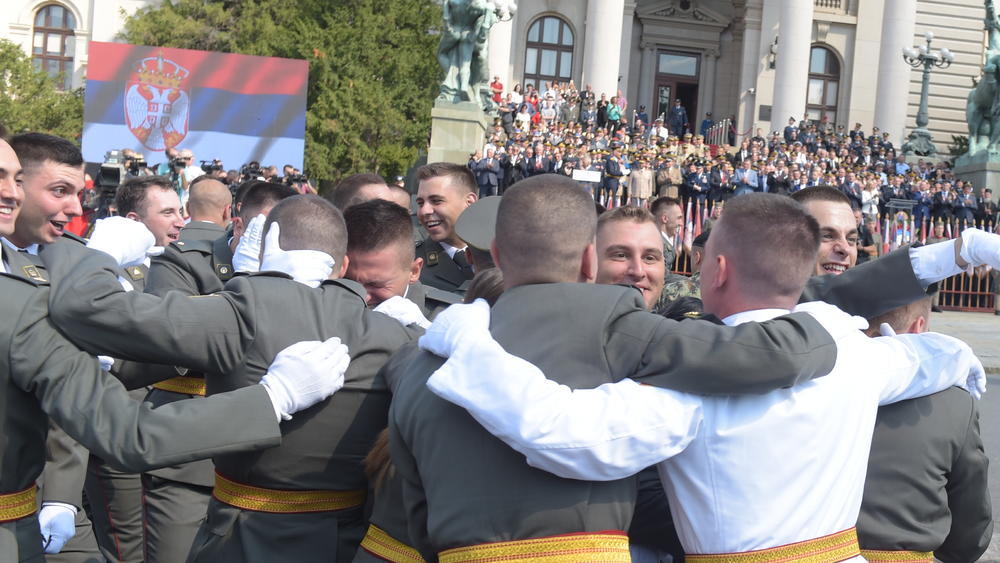 Tada su porodice i rođaci novih oficira pritrčali da čestitaju svojima najmilijima.