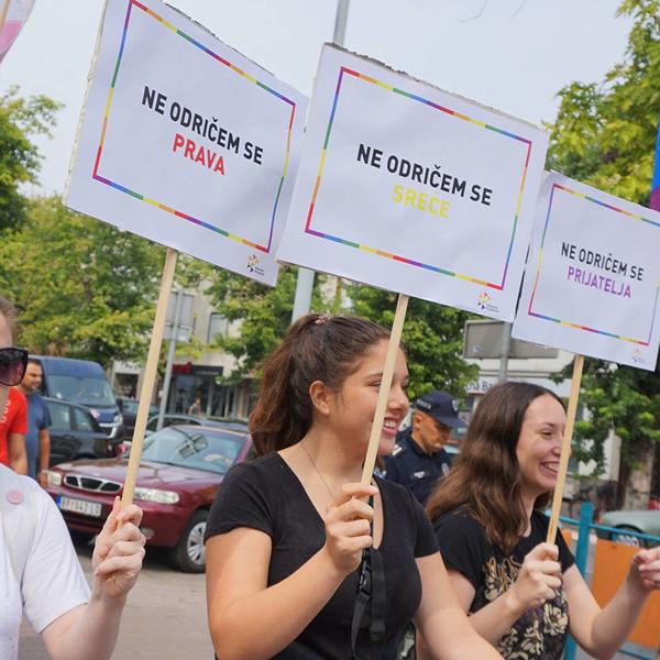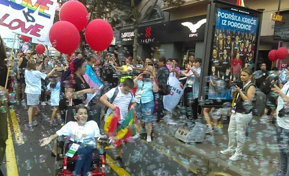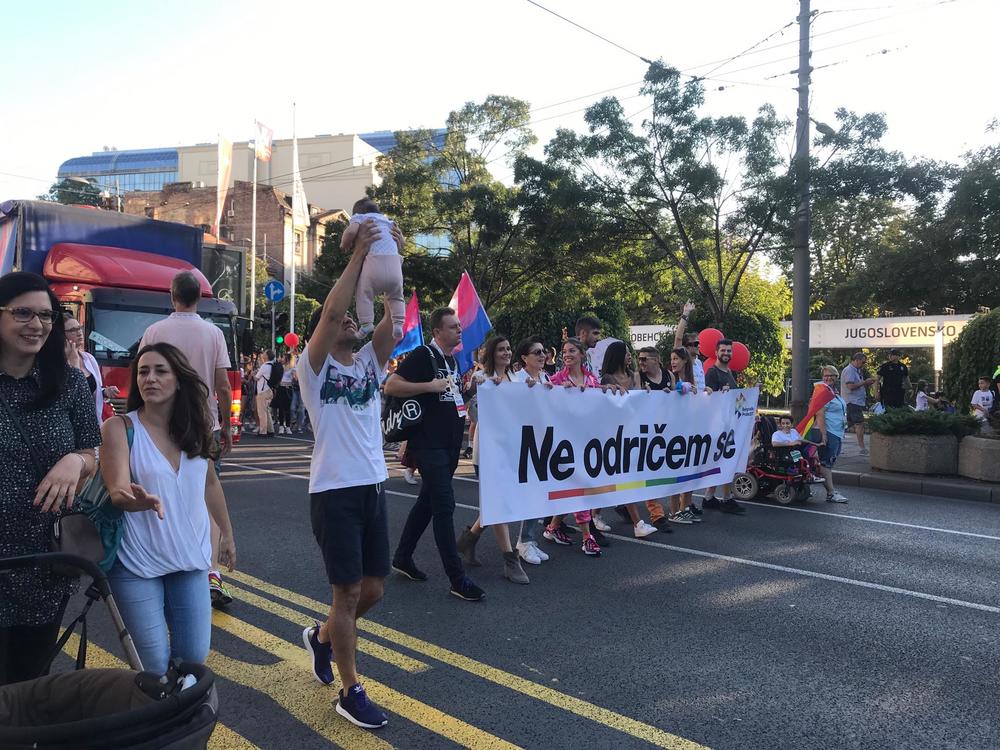 17.30 - Krenula je šetnja učesnika Parade ponosa. Na čelu povorke Parade ponosa nalazi se beba.