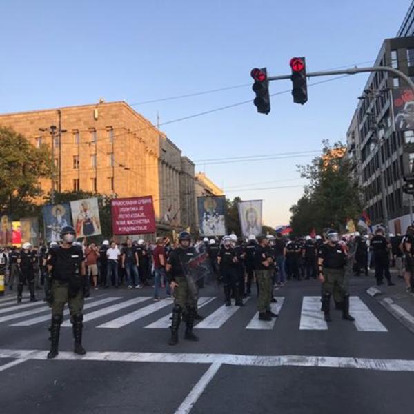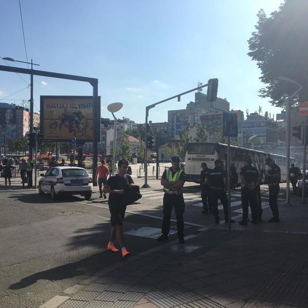 17.43 - Policija postavlja još jedan prsten na uglu ulice Kneza Miloša i Bulevara Kralja Aleksandra. Upravo na mestu gde su stajali protivnici Prajda.