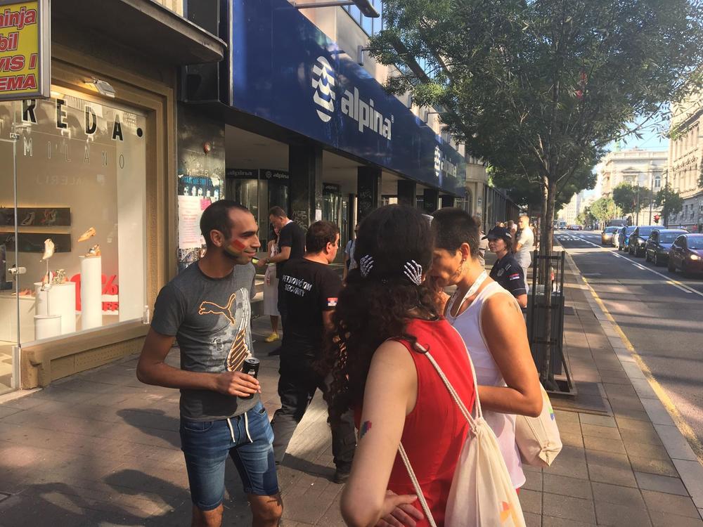 15: 00 - Pripadnici LGBT populacije polako se pripremaju za svoju šetnju, a Trg Slavija je već uveliko zatvoren.