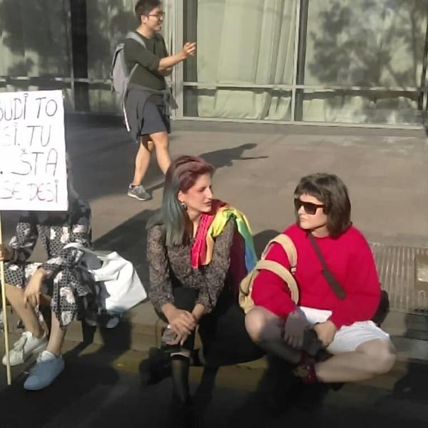 16.42 - Prajd šetnja samo što nije počela, a svi učesnici su spremni i na svojim mestima. Neki imaju posebne zahteve ispisane na transparentima, a drugi su našli i originalnije načine da se izraze.
