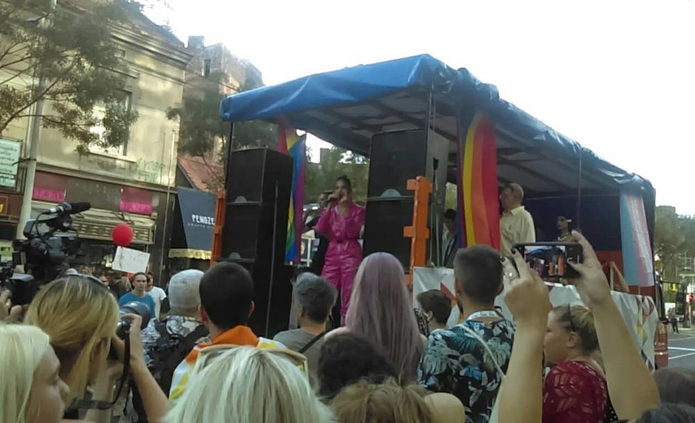 17.20 - Pevačica Sara Jo obratila se učesnicima kao "kuma" ovogodišnje Parade