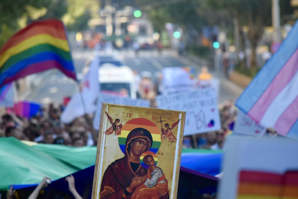 Osim raznih transparenata, u kolonoi prajda bila je i ikona Bogorodice.