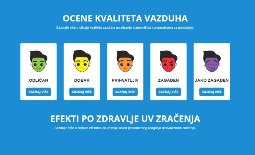 Prema tom sajtu, kvalitet se ocenjuje kao odličan - zelena zona, dobar - žuta, prihvatljiv - narandžasta, zagađen - crvena i jako zagađen - ljubičasta.