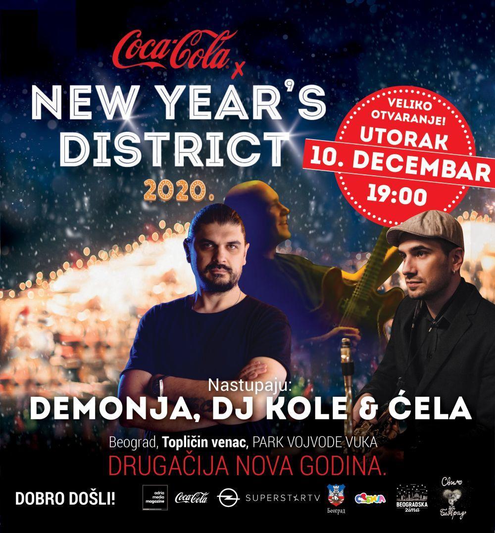 U Beogradu na Topličinom vencu u parku Vojvode Vuka, 10. decembra u 19:00 časova svečanim paljenjem novogodišnjih lampica otvara se jedinstven praznični festival Coca Cola x New Year’s District koji će trajati sve do 8. januara 2020. godine.