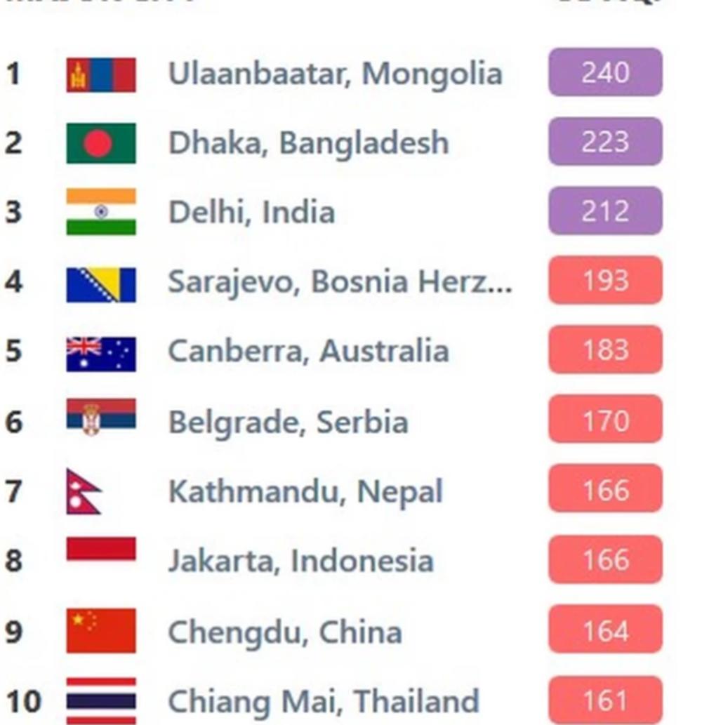 Prema podacima sajta Air Visual, Beograd je u 12.00 bio šesti najzagađeniji grad na svetu, a drugi u Evropi, odmah posle Sarajeva. Slične rezultate beleže i Agencija za zaštitu životne sredine, sajt Beoeko koji zajedno drže Grad Beograd i Gradski zavod za javno zdravlje, a zagađenost vazduha u realnom vremenu možete uživo.