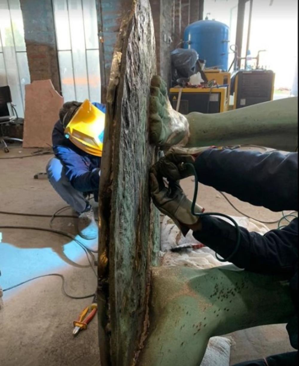 Skulptura je bila sastavljena iz više delova povezanih pomoću 132 šrafa. Nakon 90 godina, stanje nekih šrafova je bilo izuzetno loše. Sada su svi šrafovi očišćeni i zaštićeni specijalnim premazima od dalje korozije, a svaki šav je dodatno obezbeđen novim zavarima.