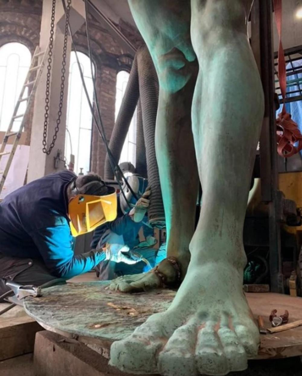 U ateljeu vajara Zorana Кuzmanovića završeni su radovi na zatvaranju i zavarivanju, odgovarajućom legurom, svih otvora od metaka i gelera, kao i ugradnja prohromske konstrukcije unutar skulpture, kroz obe noge, trup, desnu ruku, mač.