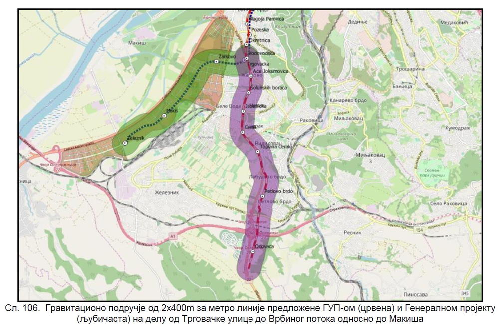 "Potpuno logična trasa osovine sever-jug (linija 1) sa pravca južnih naselja Žarkovo-Cerak-Vidikovac-Petlovo Brdo izmeštena je zapadno u Makiško polje, izvan postojećih stambenih i komercijanih četvrti. Linija prolazi kroz gotovo nenaseljeno područje, a prvih četiri kilometara trase i čak tri stanice nemaju stanovanje u gravitacionom pojasu. Tek u Žarkovu ova linija prvi put dolazi do izgrađenog gradskog tkiva i kod Trgovačke ulice se priključuje na pravac Požeške ulice ka Banovom brdu", navodi se u tekstu.