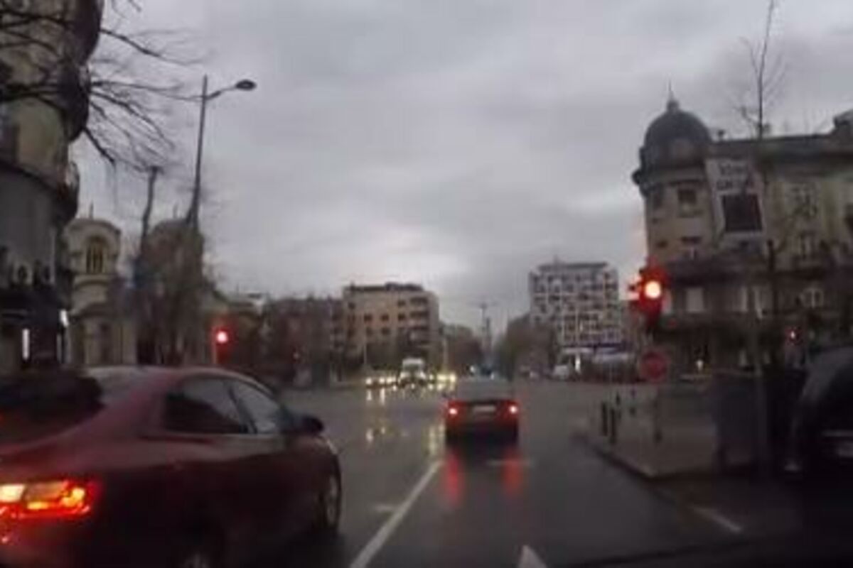 Na snimku se jasno vidi vozač koji vrlo lagano prolazi na crveno svetlo na semaforu u samom centru grada jutros oko sedam sati: