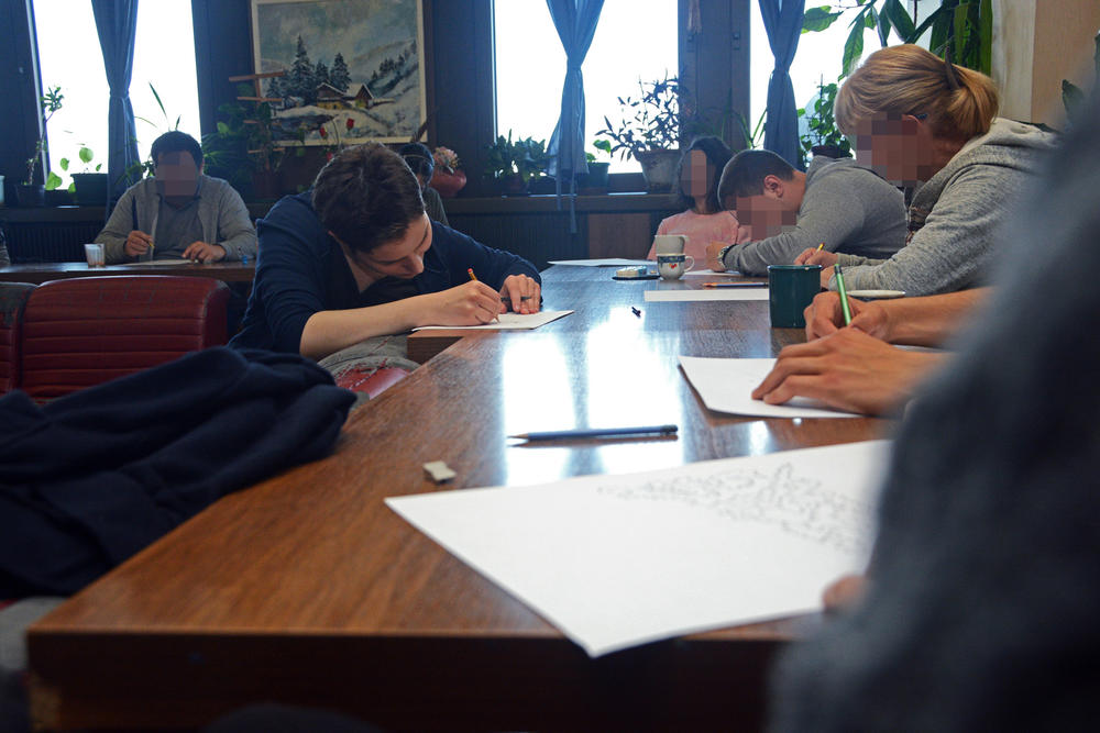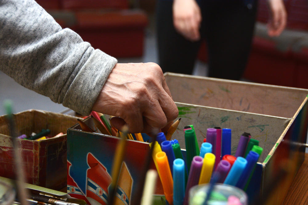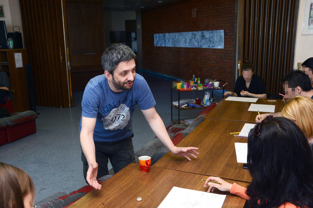 Kročili smo u prostorije ove radionice na VMA. Sačekalo nas je 20-tak pogleda dobrodošlice. Ne, ovde nisu deca koju smo prethodno pomenuli. Ovde su odrasli ljudi, različitih urasta, ali i problema. Ovde, prema rečima psihologa Tatjane Stojanović, najčešće dolaze oni koji imaju problem sa anksioznošću, depresijom, psihozom, ali i bolestima zavisnosti. Radionica počinje onda kada u ovu prostoriju rame uz rame sa Tatjanom, kroči slikar Goran Stojčetović. Iako nisu svi talentovani za crtanje, on ih animira da izvuku ono najbolje, ali i najgore iz sebe.