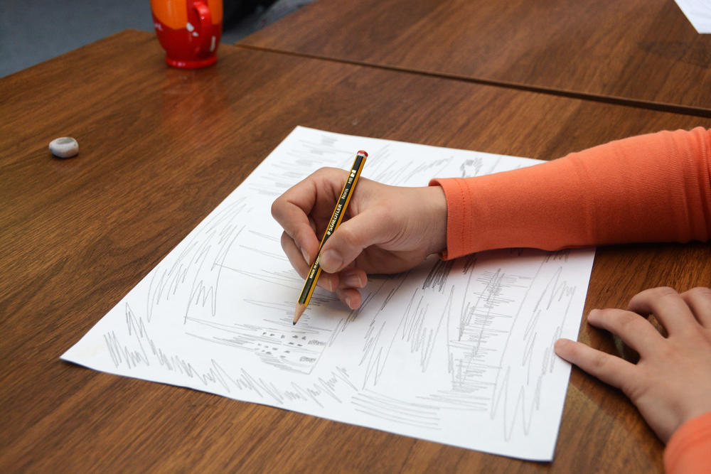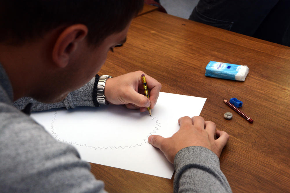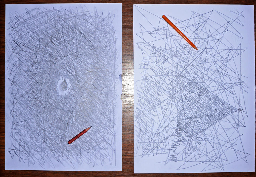 I - počinje. Papiri šušte. Čuje se zvuk olovke koja grebe po njima. Pogledi svih sada su uprti u te bele površine prepune novih mogućnosti. Cilj je naškrabati mnogo linija, a potom, u tom izobilju neobičnih oblika, izvući neki smisleni oblik.