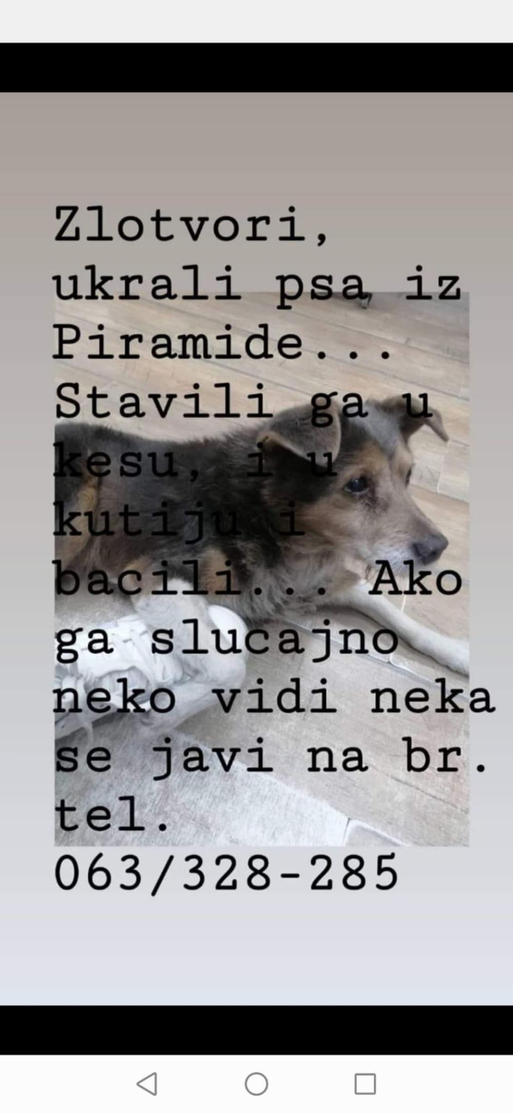 Na teritoriji Beograda danas je nestao još jedan pas. Naime, pas je ukraden iz TC Piramida.