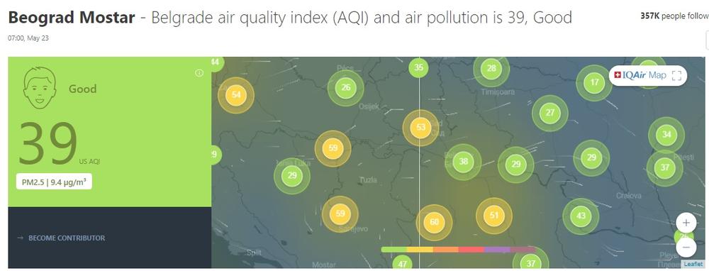 Međutim, danas je situacija drugačija - kvalitet vazduha u Beogradu je dobar!