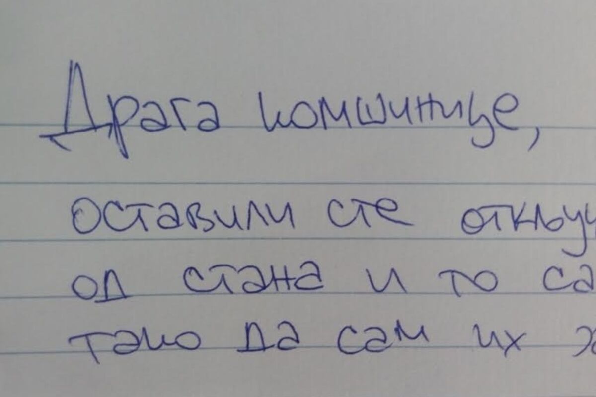 Naime, Ljubinka je ostavila otključana vrata sa ključem u bravi, a on joj je ostavio poruku zbog koje joj je pao kamen sa srca.