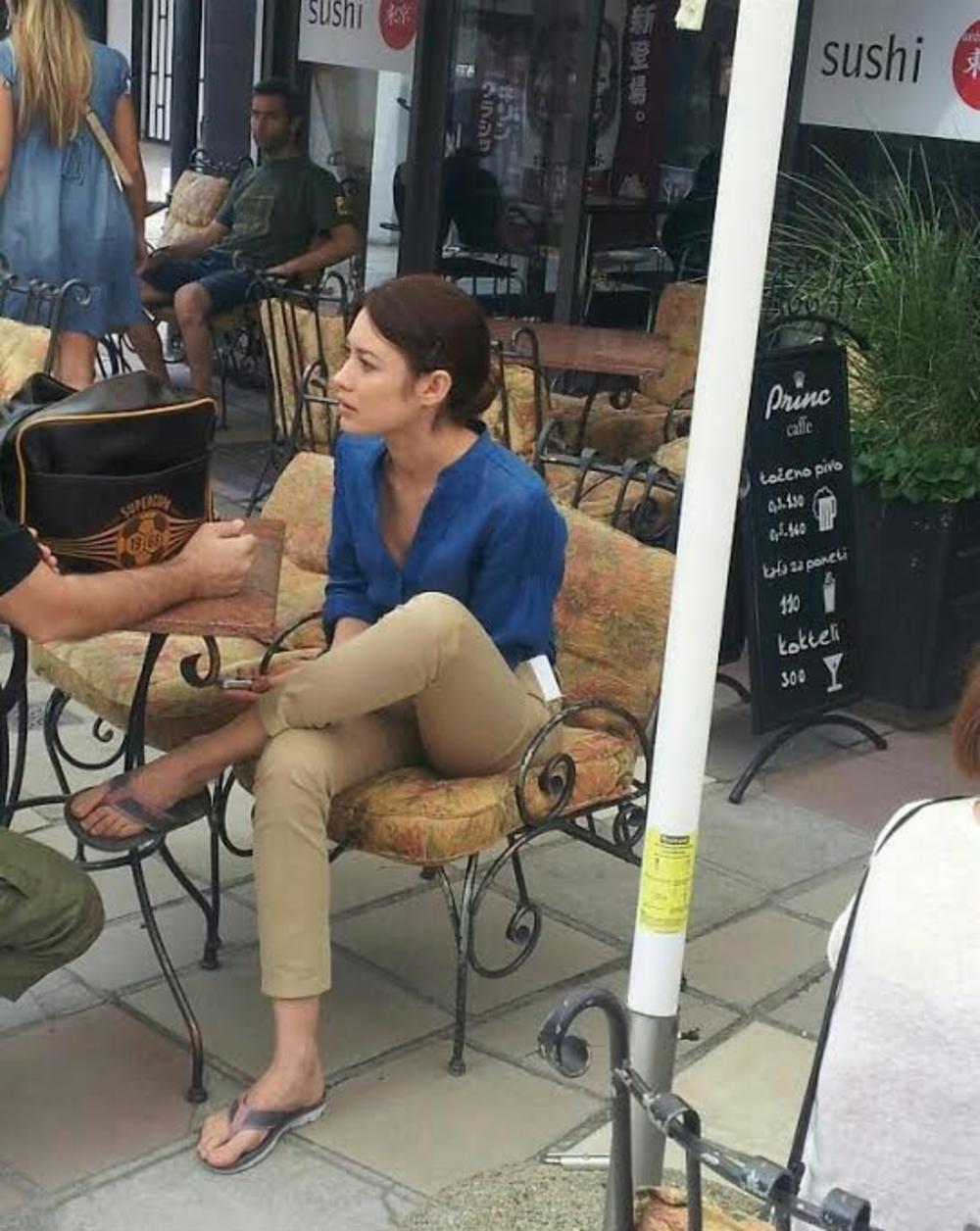Takođe, ovde je i Olgi najviše odgovaralo što može da pobegne od paparaca, i u kežual izdanju popije jutarnju kafu, tokom snimanja.