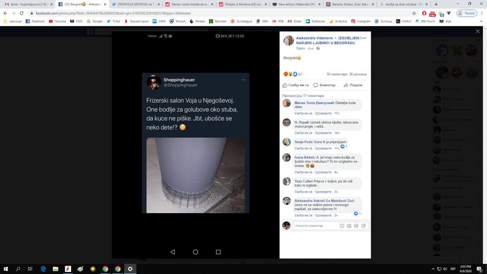 Prema navodima sa drzuštvene mreže Fejsbuk, bodlje su postavljene kako bi sprečile pse da uz stub mokre
