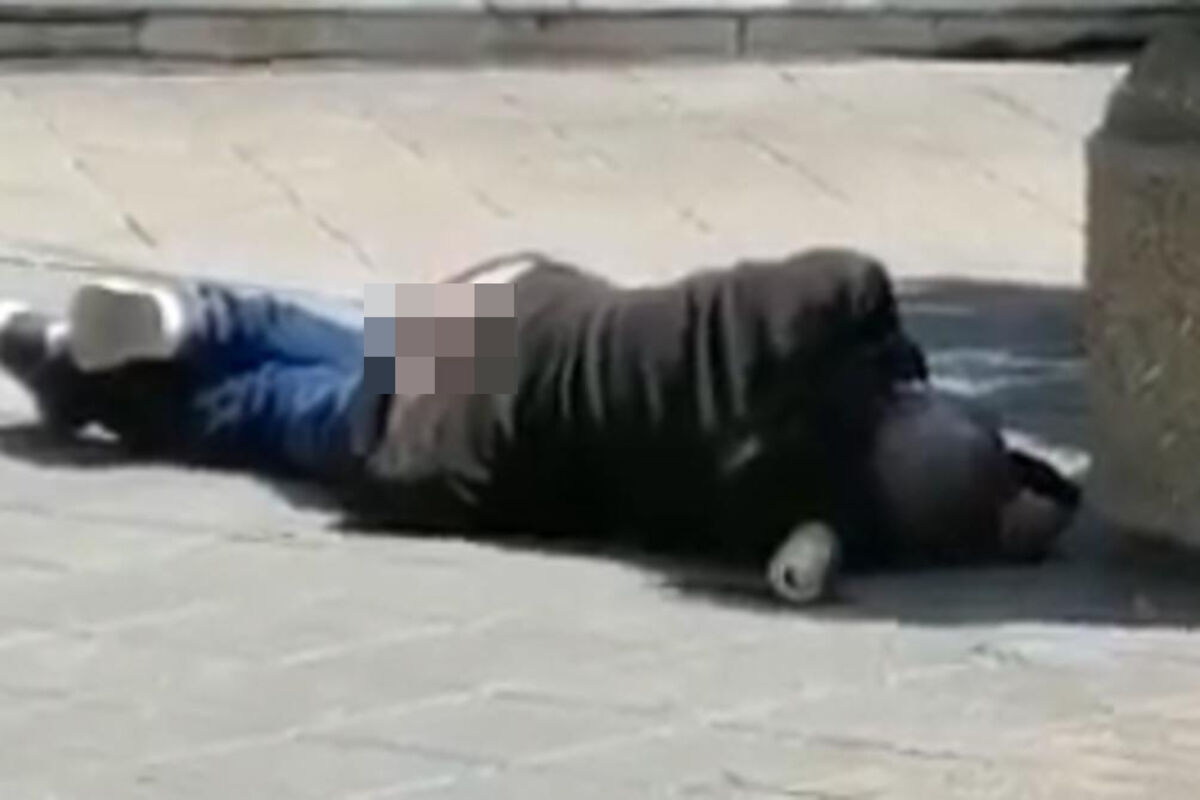 NA ULAZU U KNEZ MIHAILOVU LEŽI OBNAŽEN ČOVEK BEZ SVESTI: Niko ne sme da mu priđe (VIDEO)