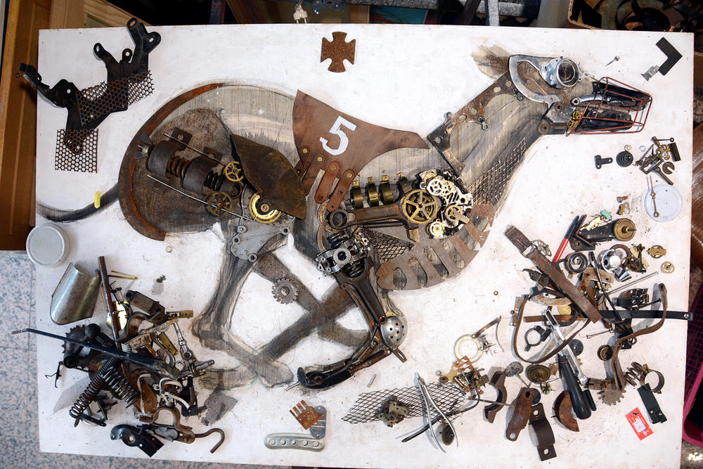 Skulpture od recikliranog materijala, ali i steam punk instalacije ovde se slažu kao puzle, i tako nastaju remek dela.