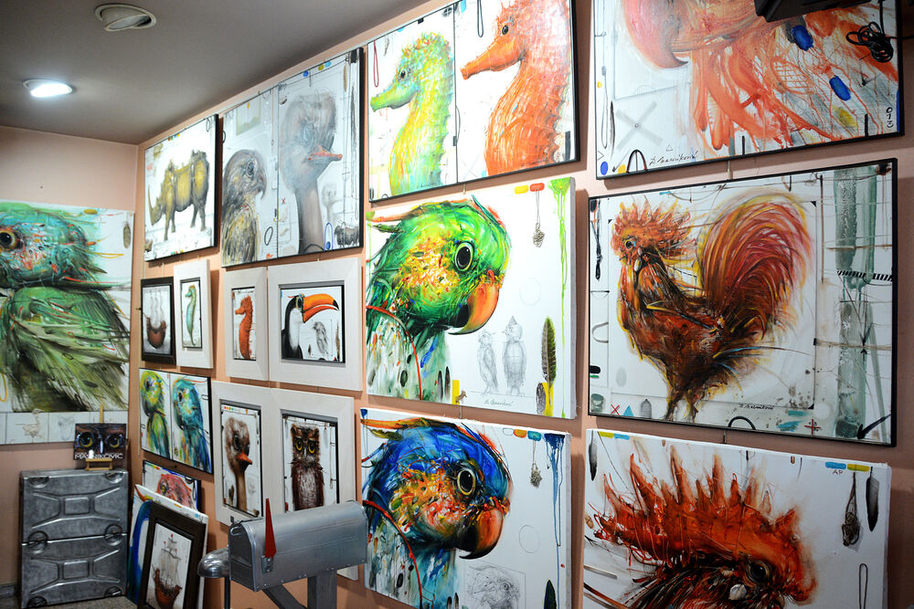 Kada kročite u art studio Đorđe Masniković - ne znate gde će vam se oči pre zaustaviti. Na zidovima vise slike poznate slikarke Danice Masniković. I sve one - gledaju u vas. Okrugle oči papagaja, noja i petla živo motre na studio.