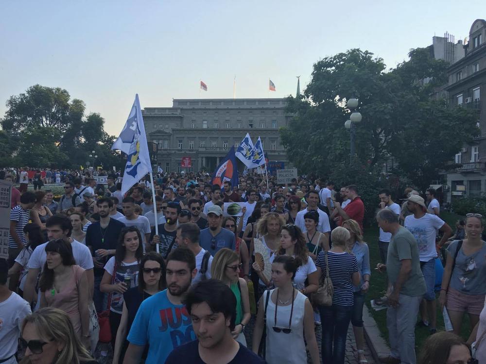 18.56 - Trasa protesne šetnje počinje ispred Starog dvora, dalje se ide ulicom Kneza Miloša do zgade Vlade Srbije, zatim Nemanjinom, pored Železničke stanice. Cilj je kod kod zgrade Geozavoda u Savamali.