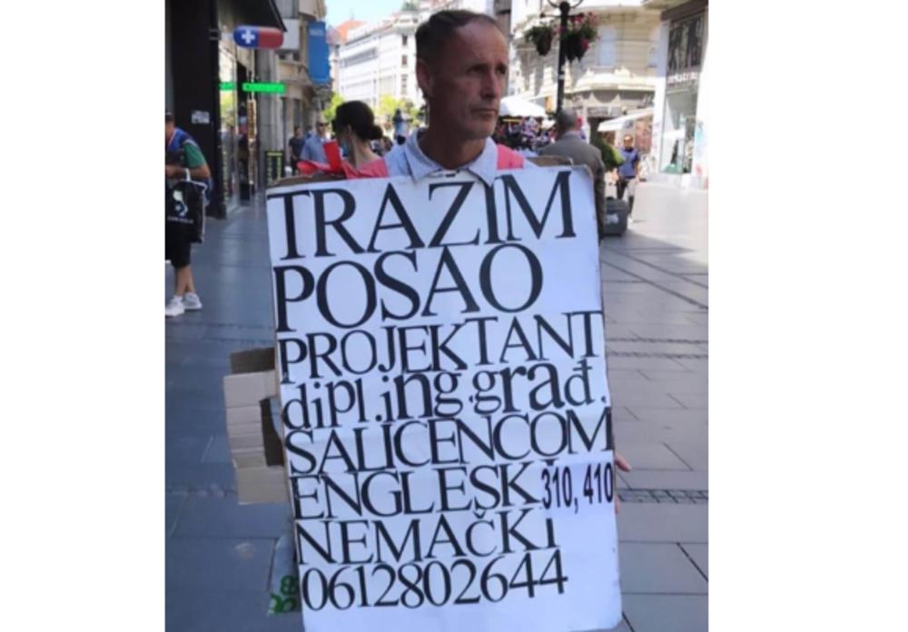 Ukoliko ste ovih dana prolazili Knez Mihailovom, moguće je da ste videli sredovečnog čoveka. Sa sobom nosi veliki transparent koji odražava njegovu odlučnost, upornost i volju.