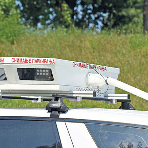 "Zona snimanja parkiranja. Komunalna milicija. Telefon za informacije...".