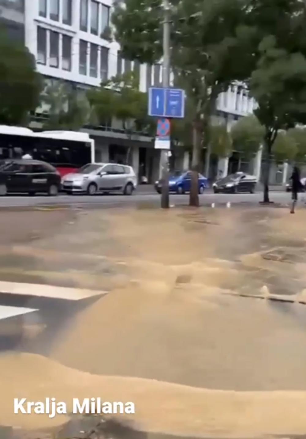 U centru Beograda, u ulici Kralja Milana u samom centru prestonice je pukla cev na sred trotoara.