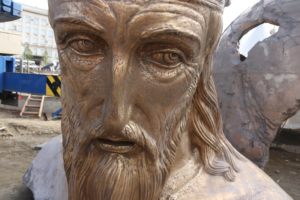 Prolazeći pored masivnih delova, naišli smo na glavu srpskog vladara i eto nas oči u oči sa njim!