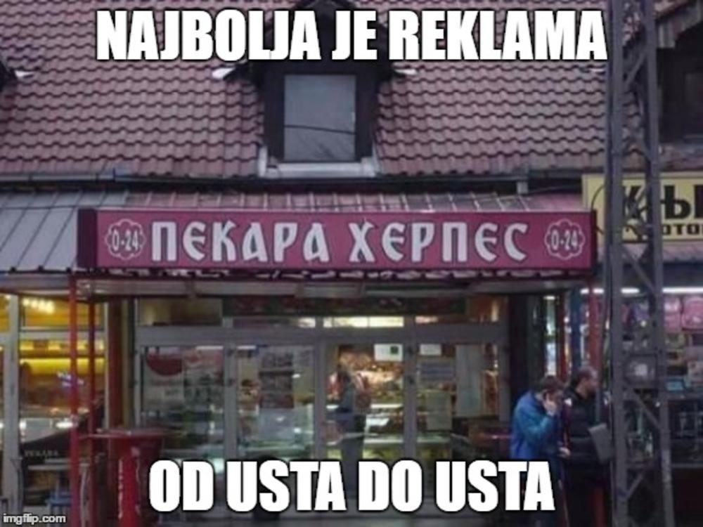 Pravo ime pekare je Hermes. Pa zato ni ne čudi što je pekara stalno puna. Da ima ime "Herpes" u nju verovatno niko ne bi ušao.