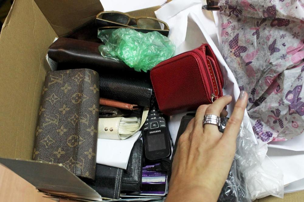 Mala prostorija sa dva stola i par kutija. Ono što i je odmah privuklo pažnju je ogroman broj kišobarana koji se nalazio u jednoj od kutija. Kese sa maramama, igračkama, torbicama, naočarima... Na stolu gomila novčanika. Različitih boja, materijala. Mobilni telefoni, ključevi, lične karte i ostala dokumenta.