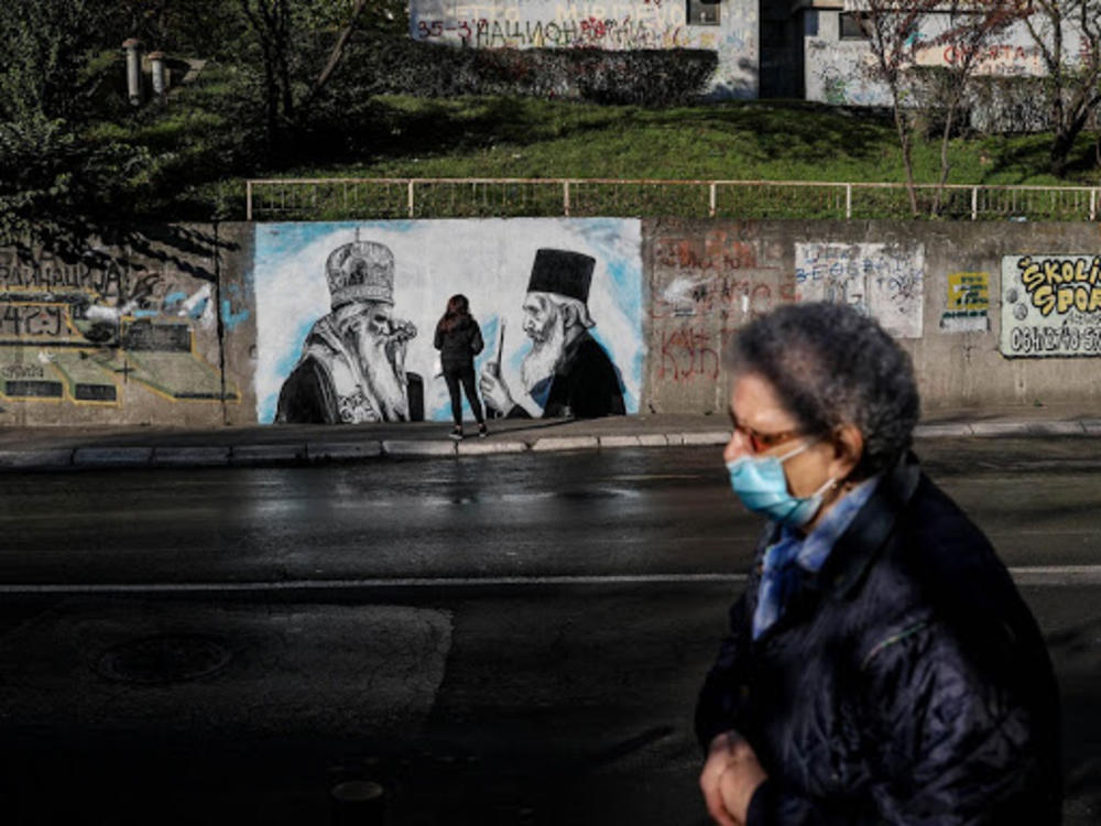 Mural sa likovima nedavno upokojenog mitropolita Amfilohija i patrijarha Pavla krasi zid u Ulici Mirijevski venac u Beogradu.