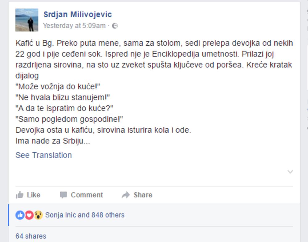 Ovog momka, postupak mlade devojke fascinirao na više nivoa, te je na Fejsbuku podelio svoje iskustvo - i oduševio sve.