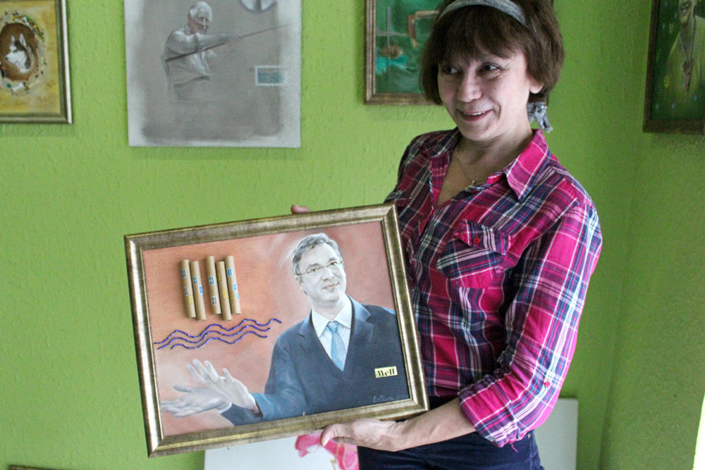 Ruskinja Eva Leliva u samom centru Beograda otvorila je galeriju i svakodnevno privlači pažnju mnogobrojnih prolaznika. Razlog tome je što izlog njenog ateljea krase portreti Vladimira Putina, Aleksandra Vučića i Vojislava Šešelja.