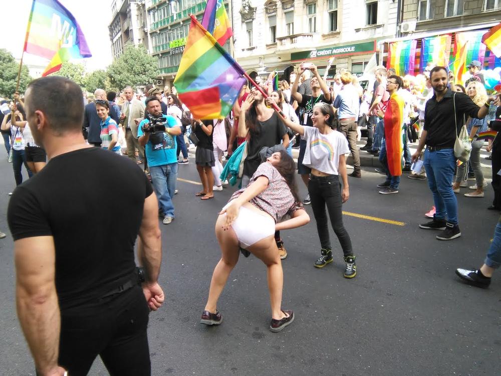 Hit sa Prajda: Desničar sa prozora provocirao učesnike, gejevi mu pokazali dupe! (FOTO)