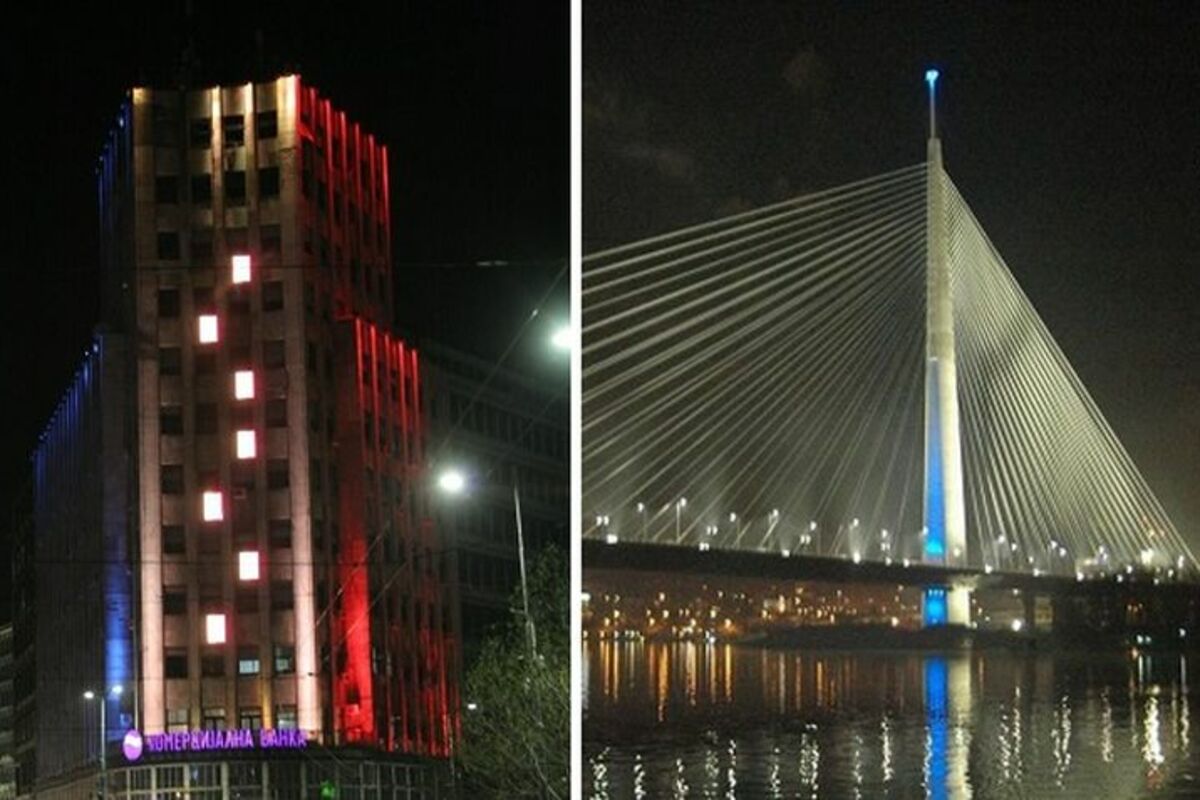 Most na Adi i Palata Albanija će biti obojene u crveno večeras kada se upali javno osvetljenje u gradu i biće u toj boji do četvrtka ujutru.