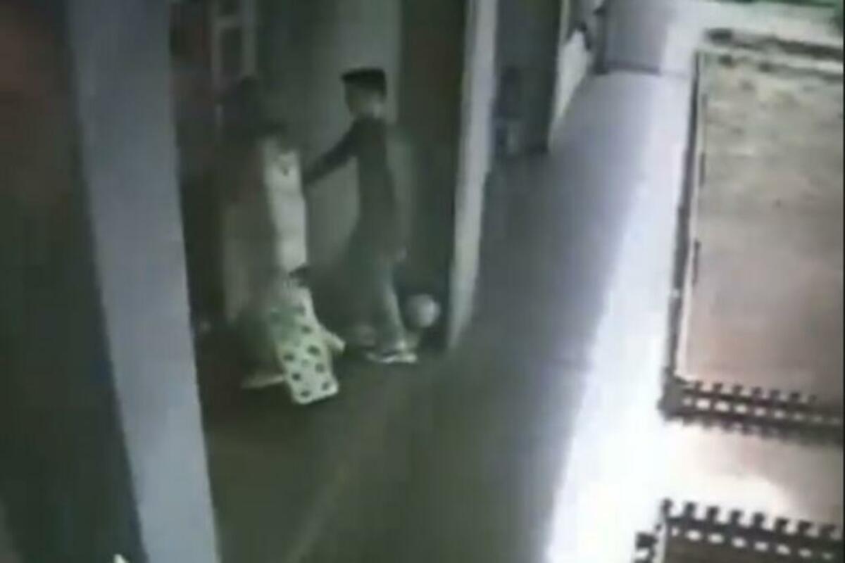 Na snimku se vidi kako stariji prvi prilazi ulaznim vratima zgrade da ih otvori, gospođa punih ruku u tom trenutku našla se u sredini, a manji ide iza nje i ruka mu kreće ka njenom boku.