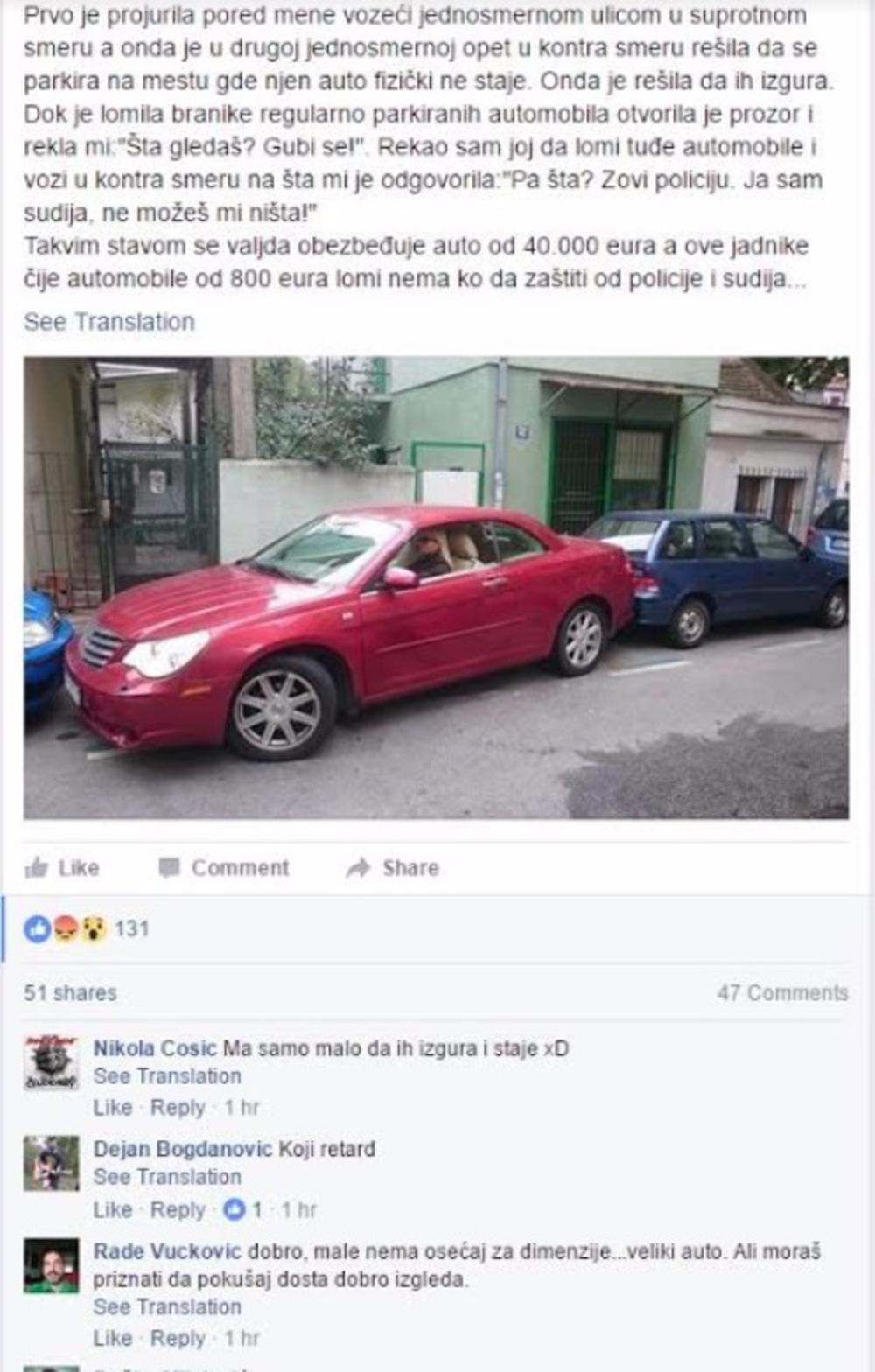 Na Fejsbuku je osvanula fotografja koja je izazvala mnogo komentara, a oni koji su je podelili tvrde da je na njoj žena koja je izazvala pravi mali skandal na jednom parkingu u Beogradu.